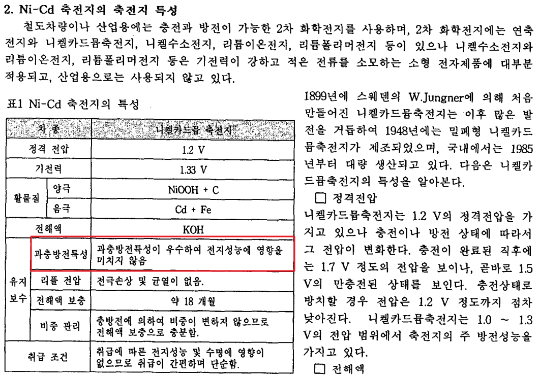 니켈-카드늄 축전지 성능 시험 분석에도 자세히 나와있다.