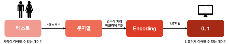 때문에, 문자열 및 모든 데이터 타입을 바이트로 변환하는 과정을 진행하며, 이 과정을 인코딩이라 합니다.